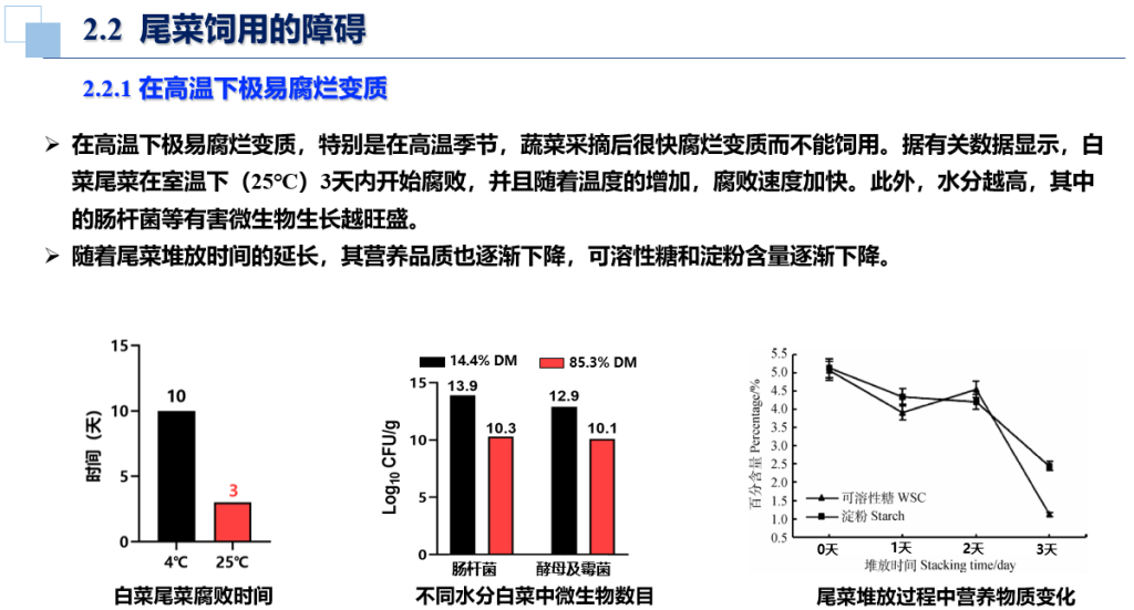 然而尾菜饲用存在很多难点,主要包括:室温极易腐烂变质,烘干脱水成本高,机械脱水产生废液,抗营养因子及毒物问题等。