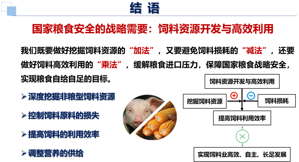 在最后的结语与展望中,单老师指出:为了缓解粮食进口压力,保障国家粮食战略安全,我们既要做好挖掘饲料资源的“加法”,又要避免饲料损耗的“减法”,还要做好饲料高效利用的“乘法”,以尾菜为代表的非常规饲料资源,尽管应用难点多, 但其中存在巨大营养潜力,值得我们去探索和开发。