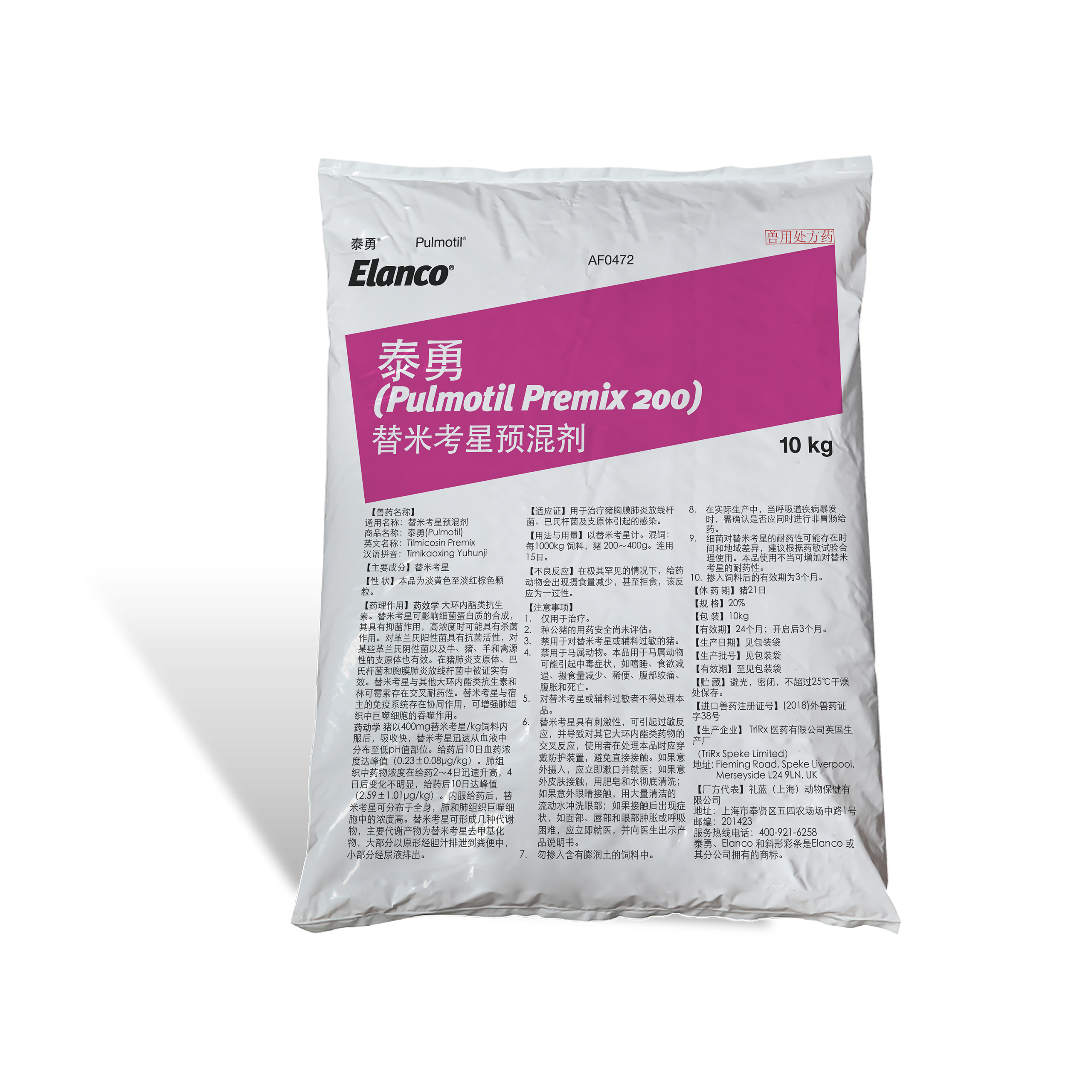 以替米考星计。混饲:每1000kg饲料,猪200~ 400g。连用15日。